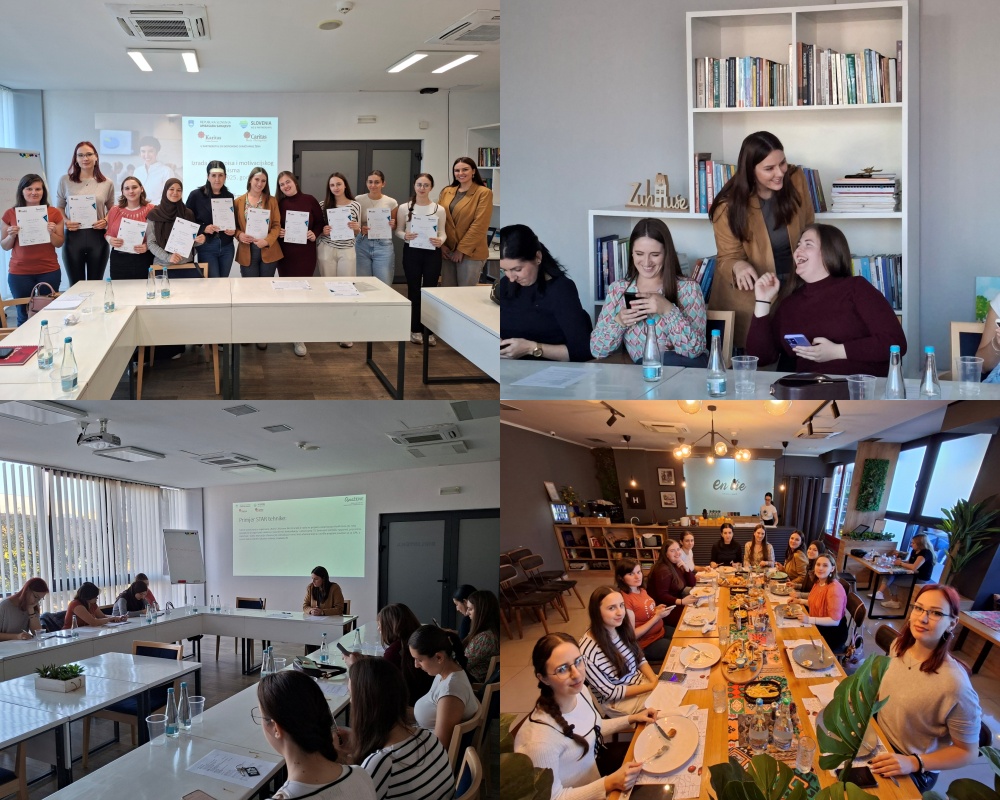 Kraj mjeseca donio nam je novu edukaciju, ovaj put na temu komunikacije i predstavljanja, pod vodstvom trenera Almira Paočića, u okviru Caritas BiH projekta Osnažena. Posjetio nas je i Marko Polajžer iz Ambasade Republike Slovenije, što nam je bila velika čast i motivacija. Radionica je bila fokusirana na to kako akademsko znanje, volontiranje i profesionalna praksa mogu biti prevedeni u kompetencije koje poslodavci prepoznaju i cijene. Kroz niz interaktivnih vježbi studentice su radile na pripremi za razgovor za posao, kreiranju primjera koji oslikavaju njihove snage te jasnom i strukturiranom predstavljanju svojih profesionalnih kvaliteta.